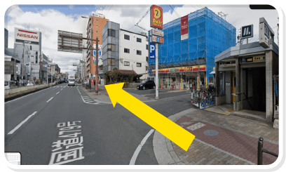 その交差点の右側の建物の黄色丸のところに
